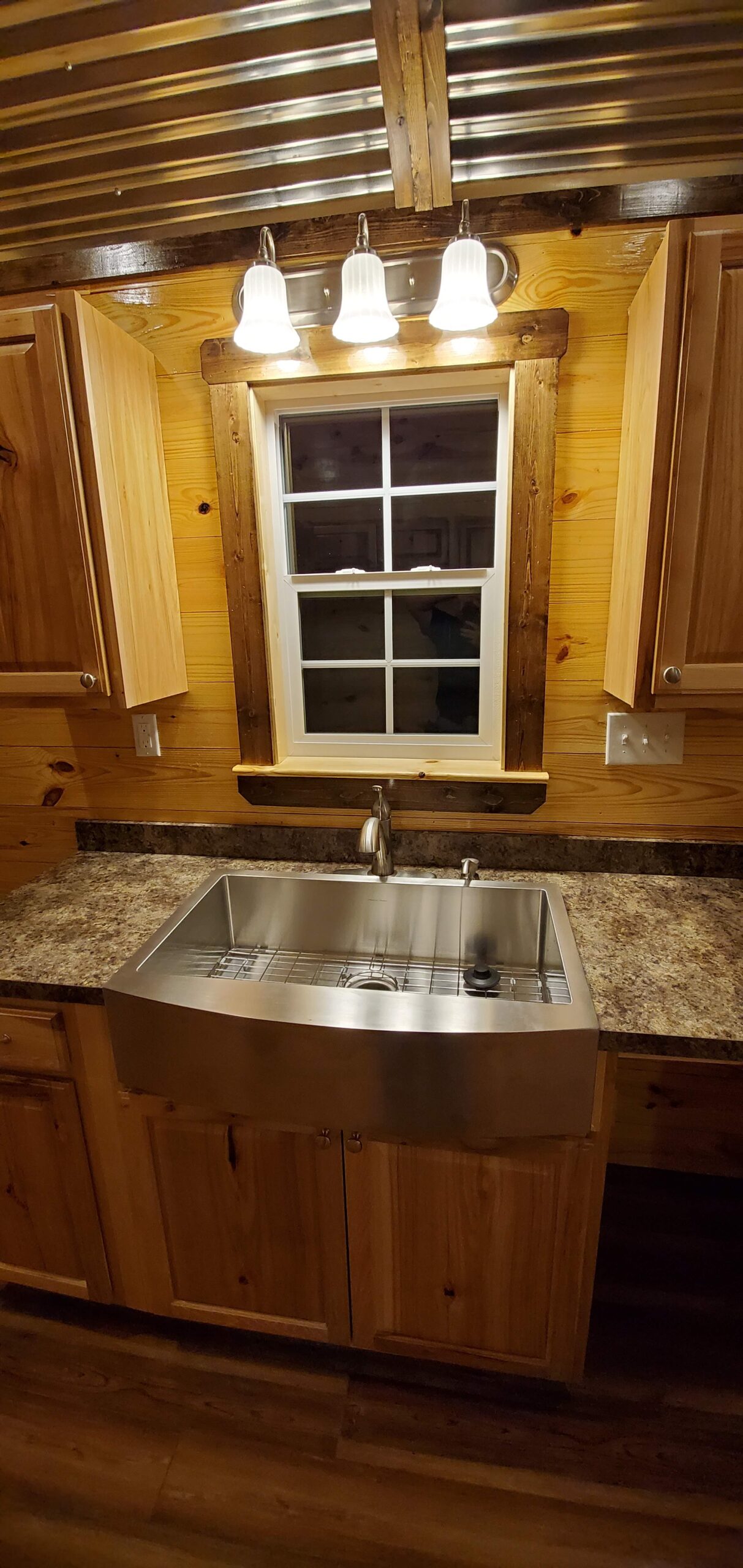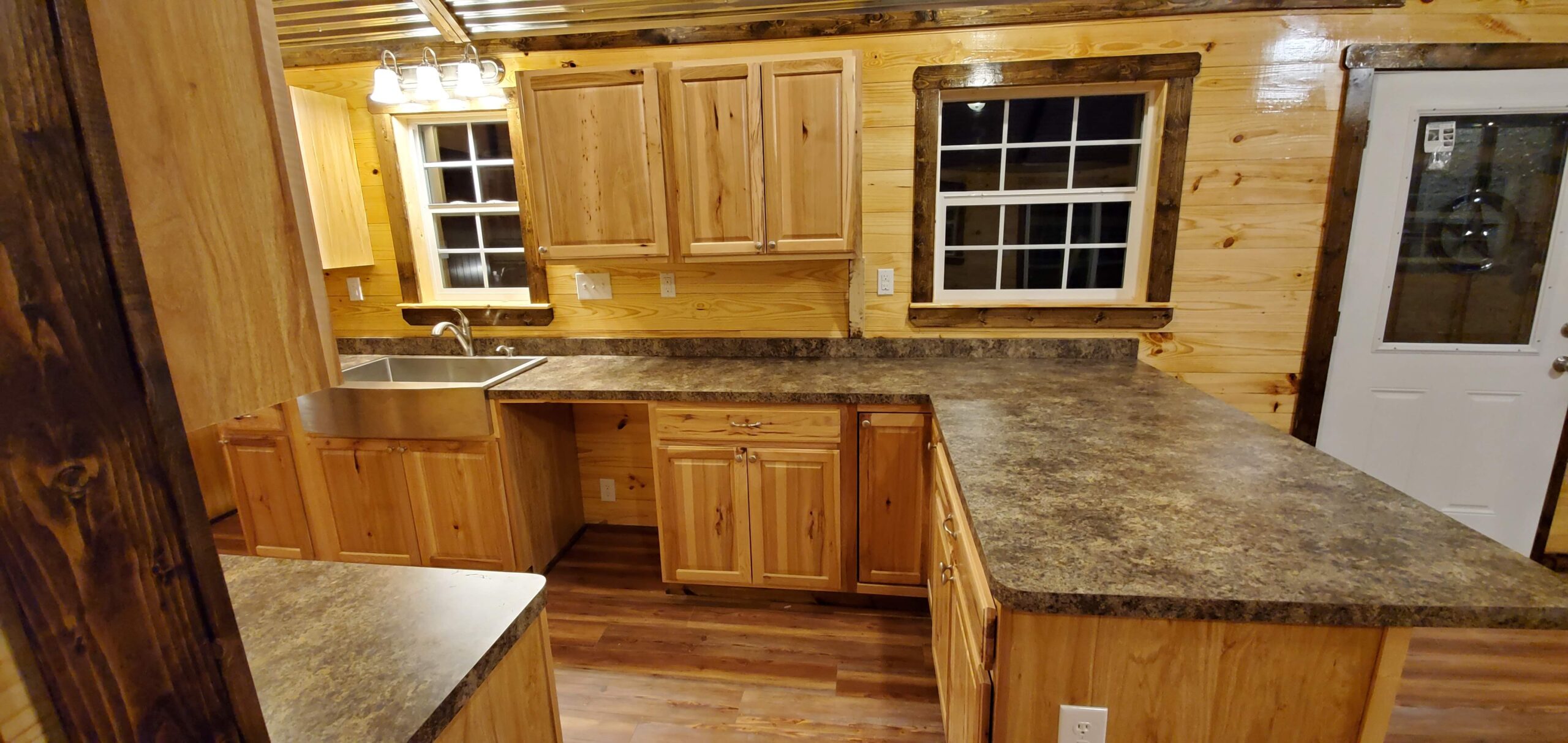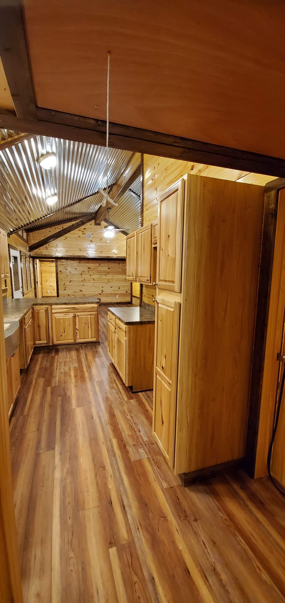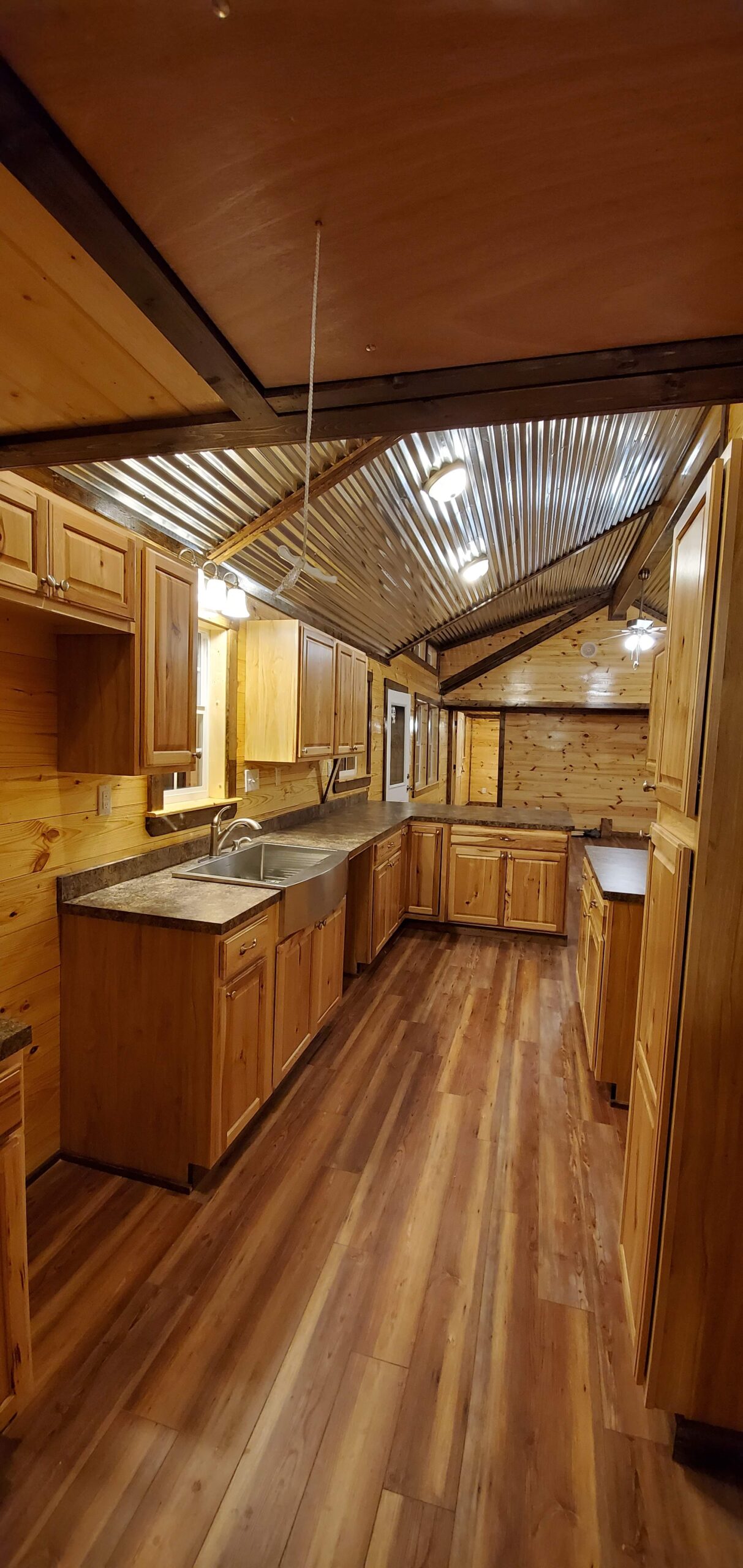 ๐ณ Gourmet-Inspired Kitchen โ Full-size appliances, ample cabinetry, and optional island bar seating for modern living in a cabin shell.